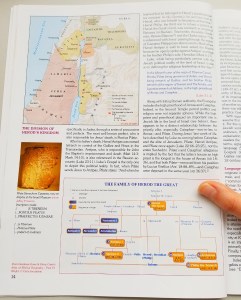 This interesting discussion of the birth of Jesus is one of many discussions in this section of the book. Others include: languages of the first century, Jewish clothing and the Gospels, the Pharisees and Sadducees, baptism and ritual immersion, women in Jesus’s ministry, the Passover meal, the Temple, and crucifixion and death. And all of this is accompanied by many pictures of relevant places and artifacts:
