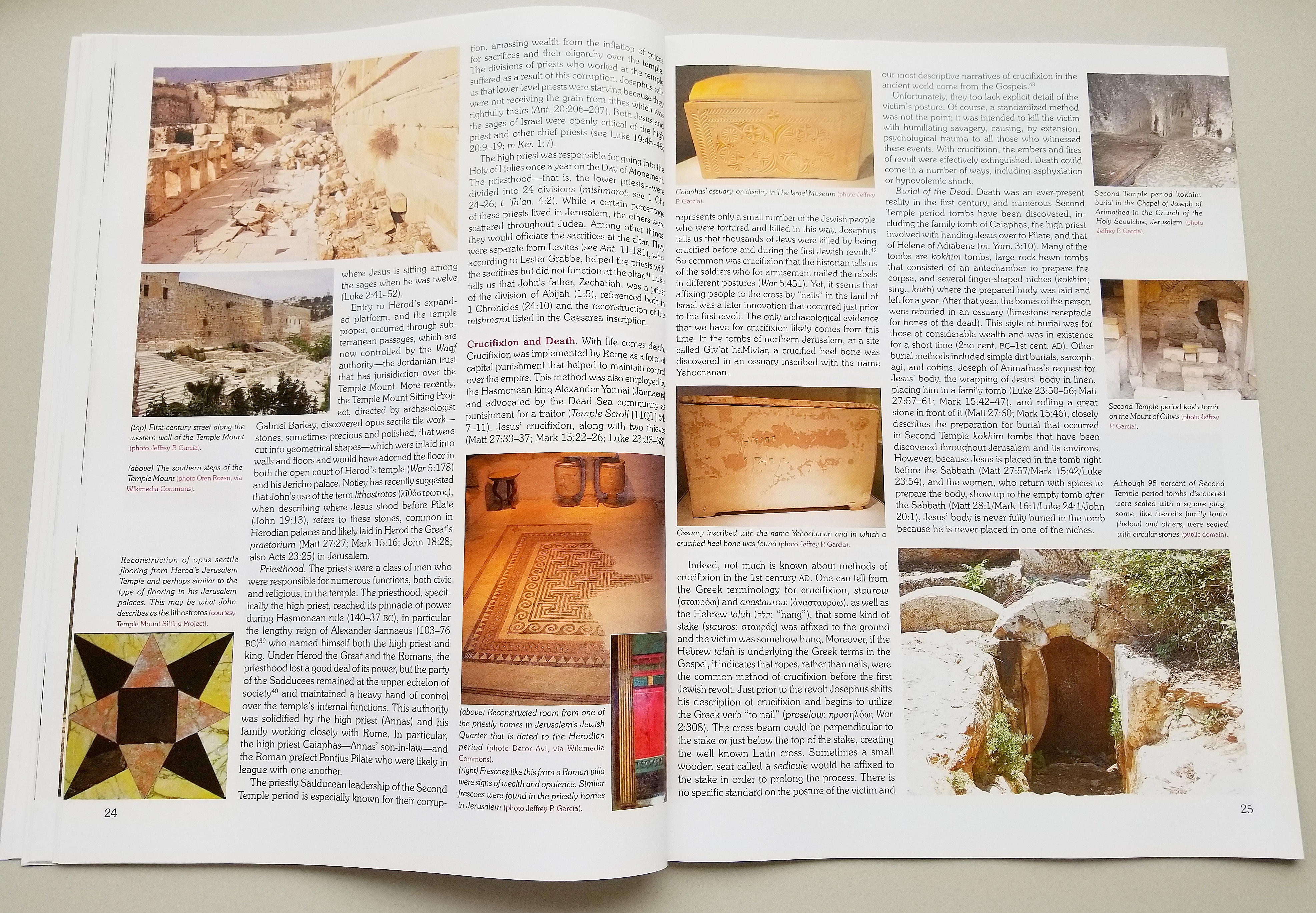 This interesting discussion of the birth of Jesus is one of many discussions in this section of the book. Others include: languages of the first century, Jewish clothing and the Gospels, the Pharisees and Sadducees, baptism and ritual immersion, women in Jesus’s ministry, the Passover meal, the Temple, and crucifixion and death. And all of this is accompanied by many pictures of relevant places and artifacts: