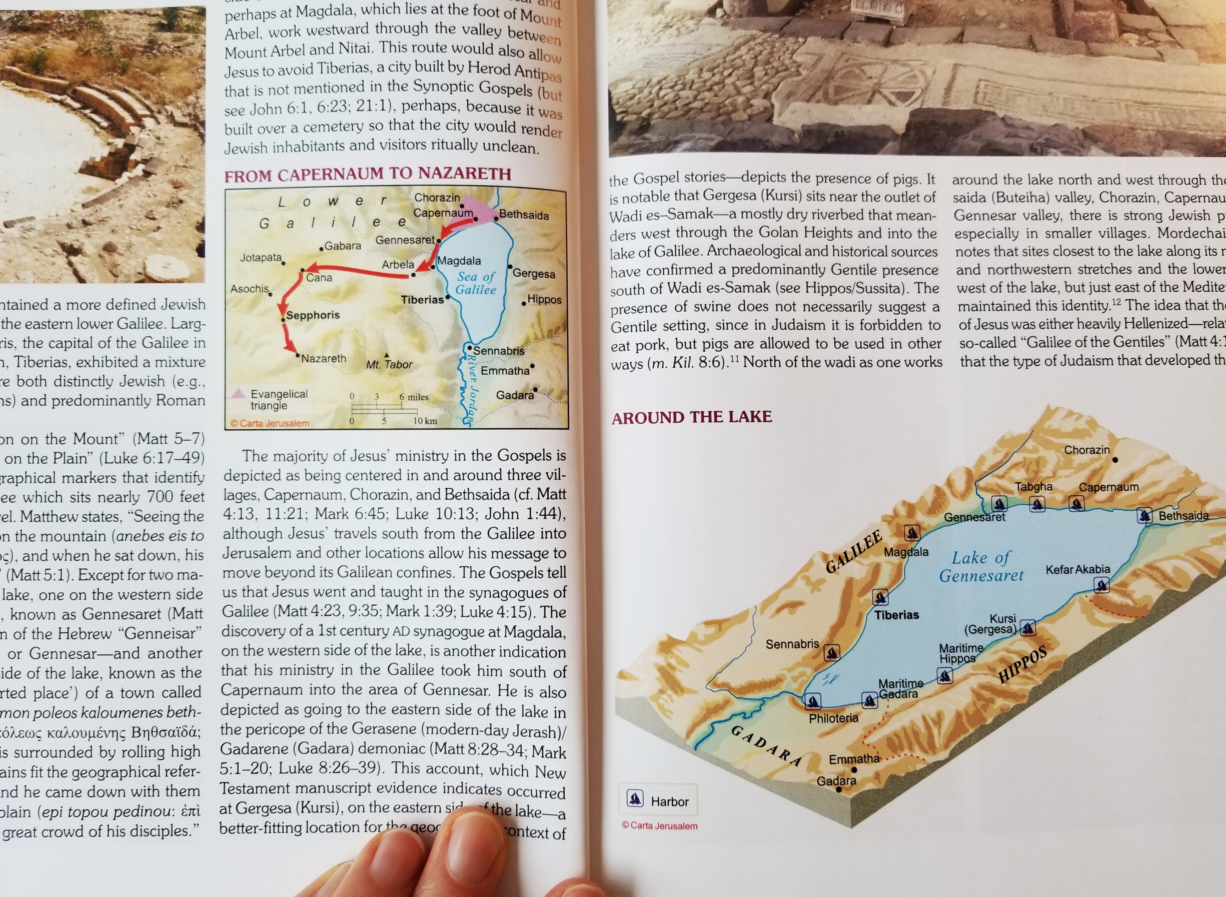 García also walks the reader through the relevant geography of the events in the gospels—Carta’s maps are highly useful here—in a way that grounds the gospel accounts in the reality of Jewish life in the first century.